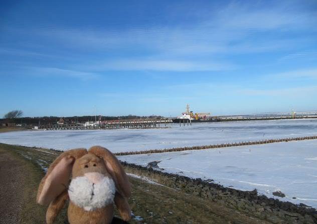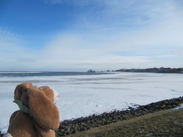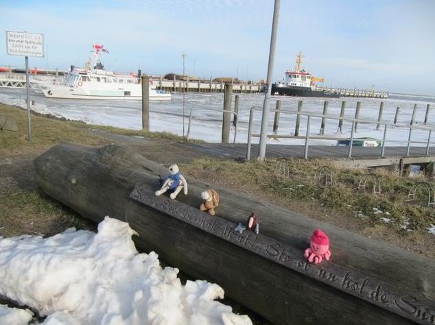 Ahoi, We went to a little harbor today. You can see it far behind me. Some days ago I went to it – and there were ice all over the place.
