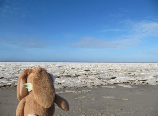 There were still sheets of ice on the beach.