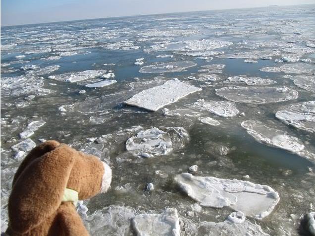 There were still sheets of ice on the beach.