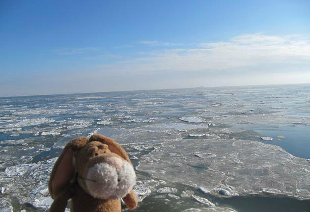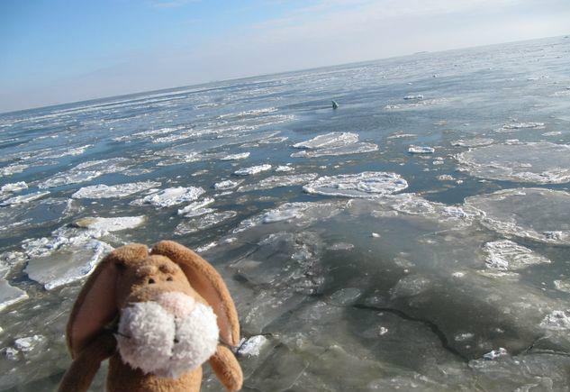 Ahoi, We went to a little harbor today. You can see it far behind me. Some days ago I went to it – and there were ice all over the place.