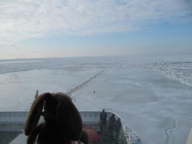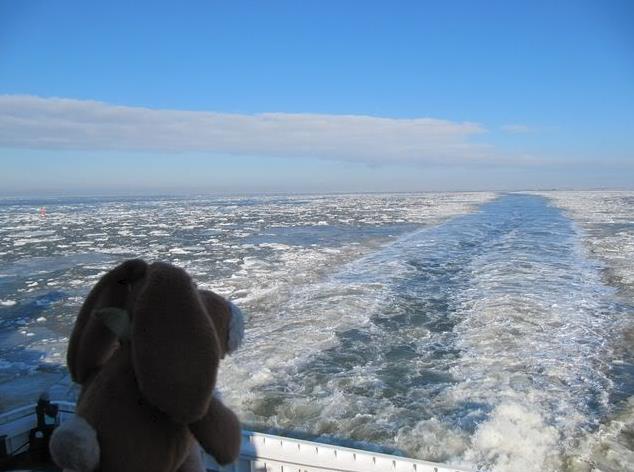 We had a nice place on the ferry – and looked out of the window. No sheets of ice anymore.