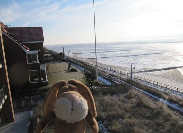Hello from Amrum, Yesterday we arrived in Wittdün. This morning we went onto our balcony and had a look around. Well – normally there is water – but now there was ice.