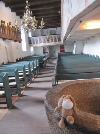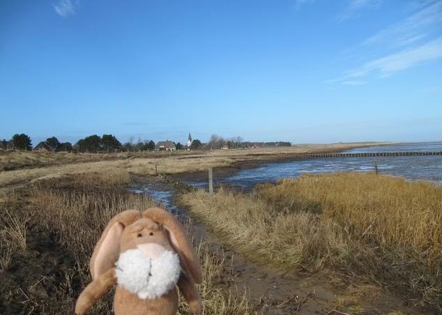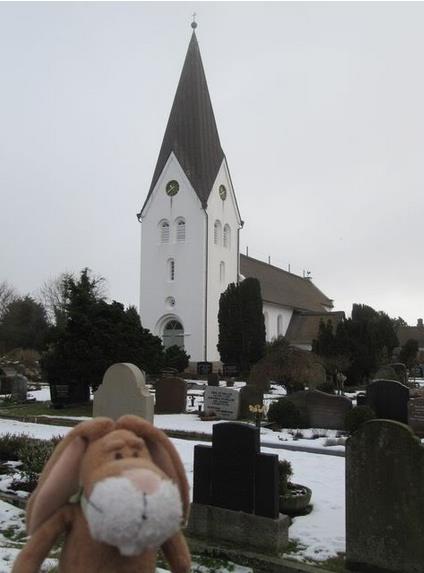Moin Moin from Nebel, We went to another village today – it is called Nebel. Behind me you can see the church of Nebel.