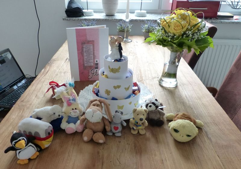 There were only some gifts, because they decided to celebrate their wedding alone as a couple.