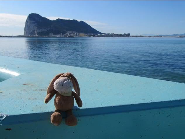 Hello from Gibraltar, we made our holidays in Spain, but visited Great Britain today. Behind me you can see Gibraltar.
