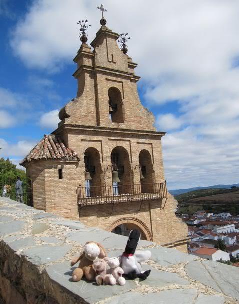 Hello from Aracena, we visited a great flowstone cave called Gruta de las Maravillas, but we were not allowed to take photos there. After the visit we climbed up a hill and saw this nice bell tower.