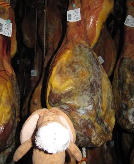We visited a small company where they produce air dried ham. You can see the ham behind me.