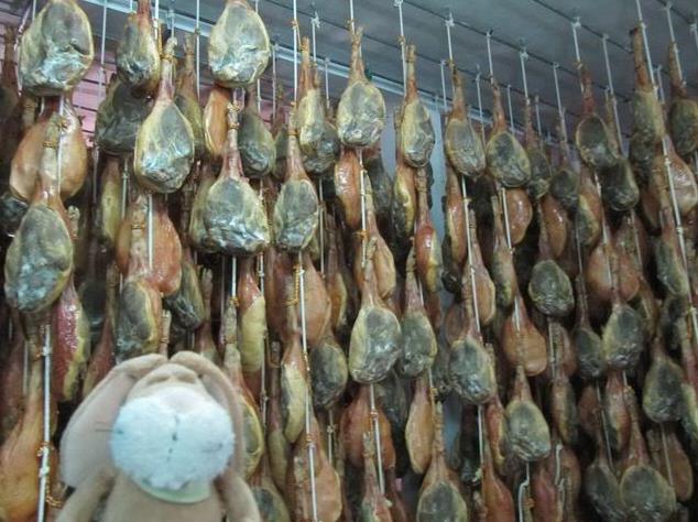 We visited a small company where they produce air dried ham. You can see the ham behind me.