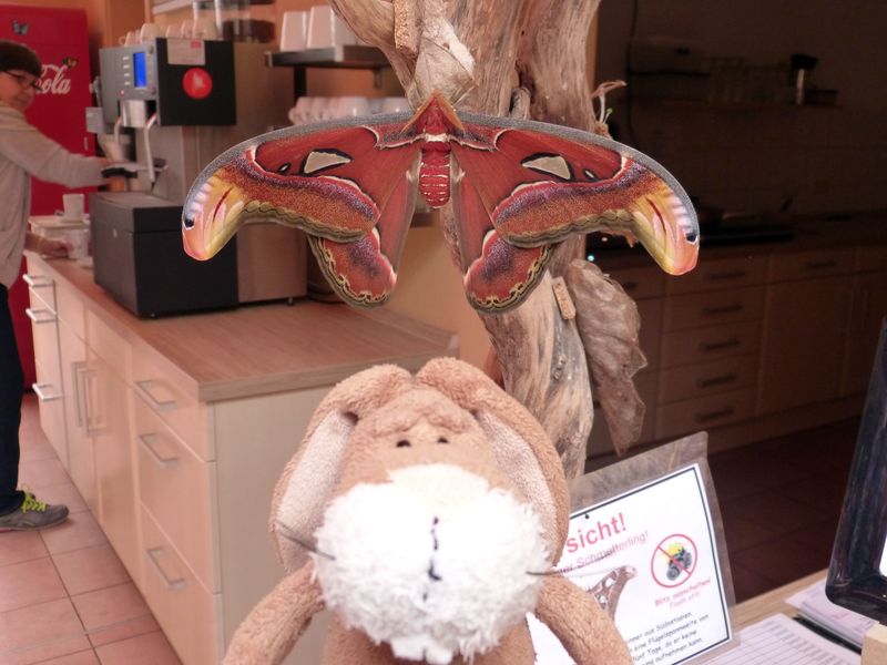 Und das hier ist einer der größten Schmetterlinge der Welt. Und er lebt! Allerdings hat er gerade geschlafen, als ich das Foto mit ihm bekommen habe.