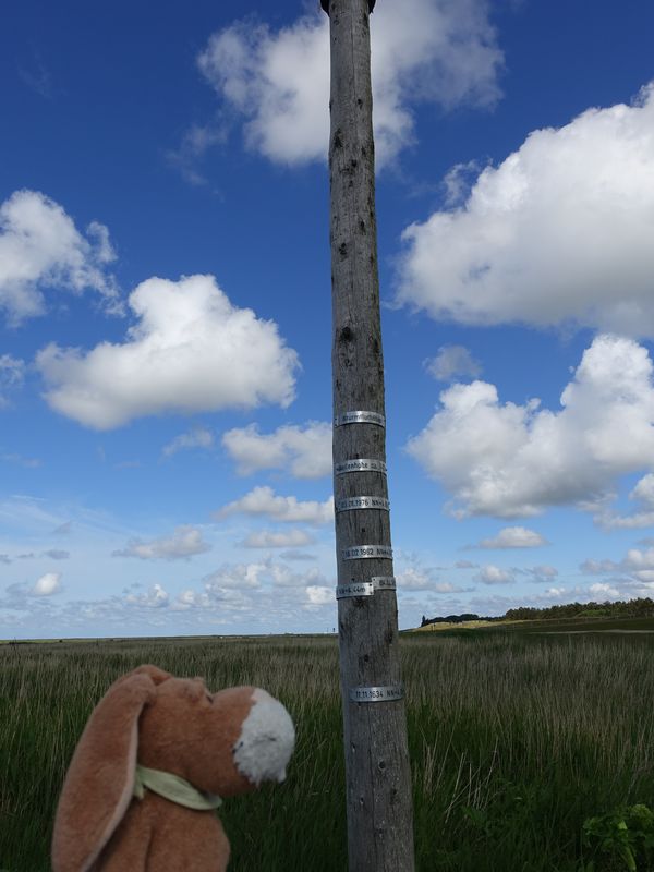 Auf dem Rückweg zum Auto sind wir an diesem Pfahl vorbeigekommen – so hoch waren die Fluten früher.