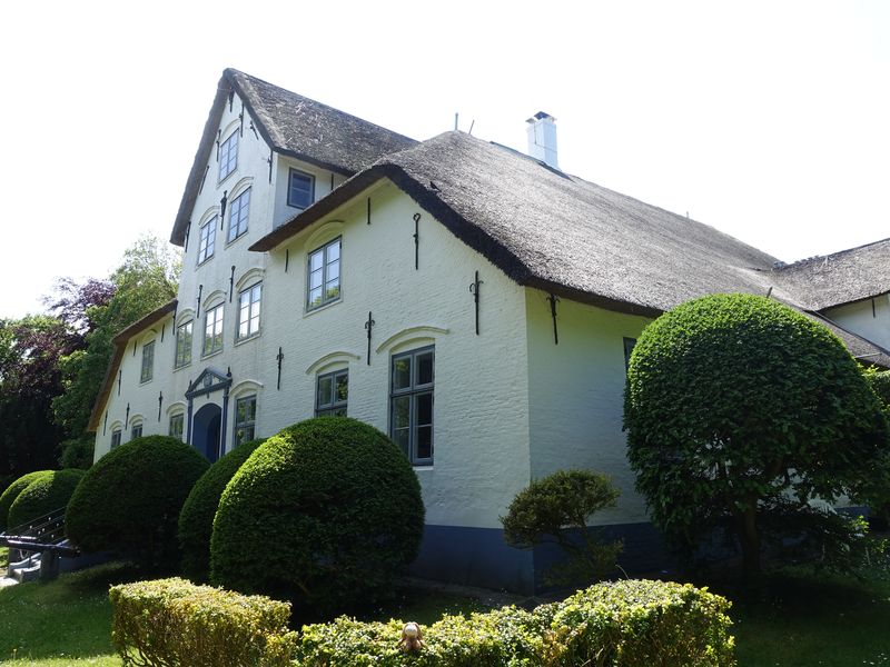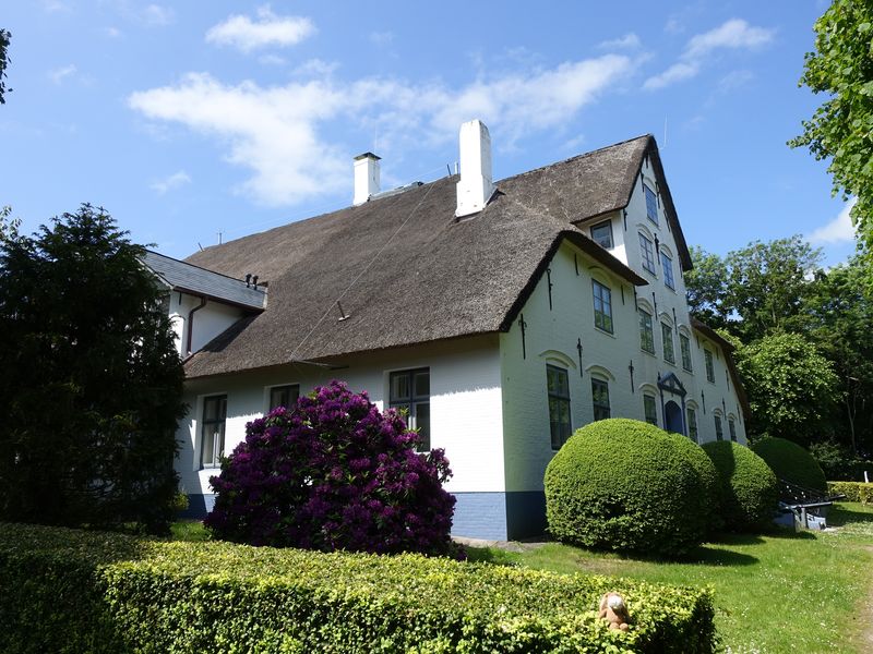 Das ist ein großes Gebäude zu dem der Garten gehörte. Heute sind Ferienwohnungen in dem Haubarg.