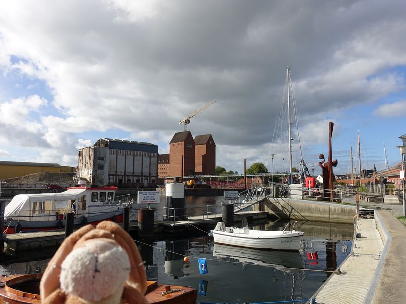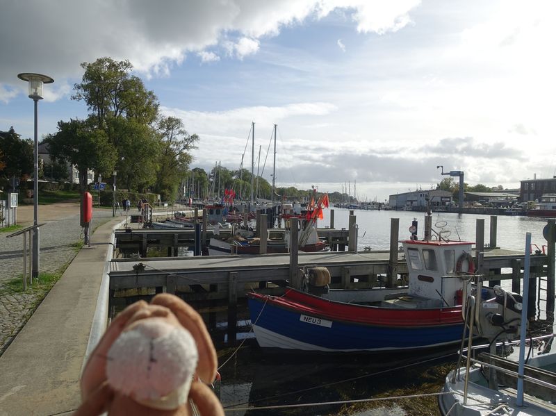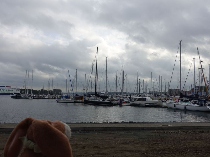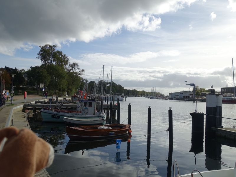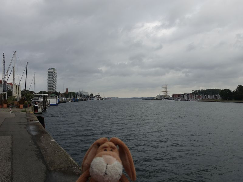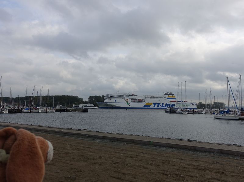 Nach der Besichtigung sind wir durch Travemünde gegangen. Dahinten ist eine große Fähre.