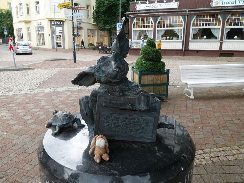 In der Ortsmitte gibt es lustige Skulpturen und einen Eichhörnchenbrunnen.