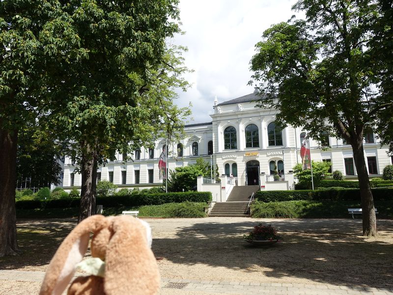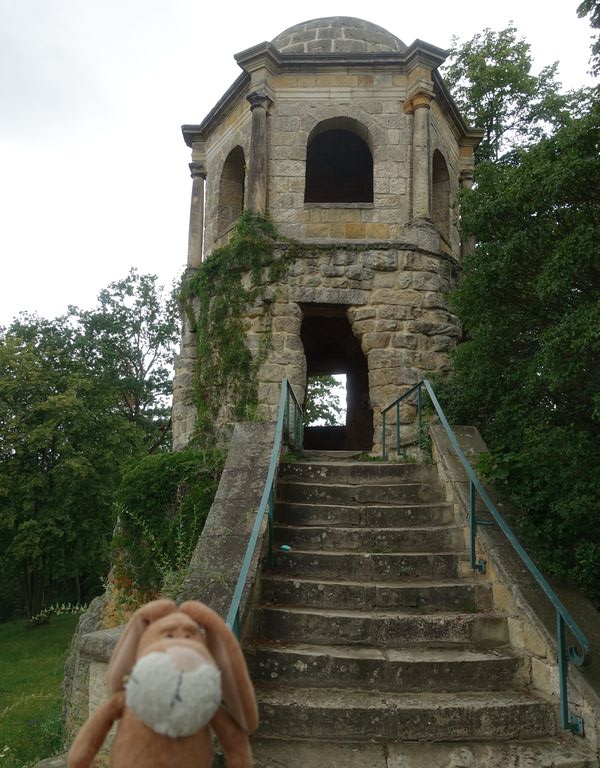 Das Wetter ist nicht so sonnig, wir sind trotzdem unterwegs. Dieser Park ist einer der ersten Deutschlands. Das ist ein Jagdschlösschen, in dem jetzt ein Restaurant ist.