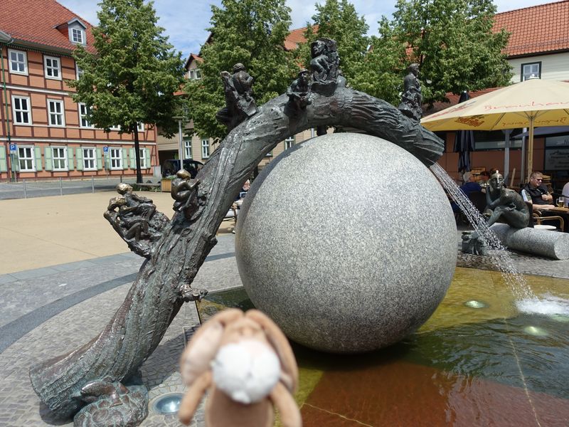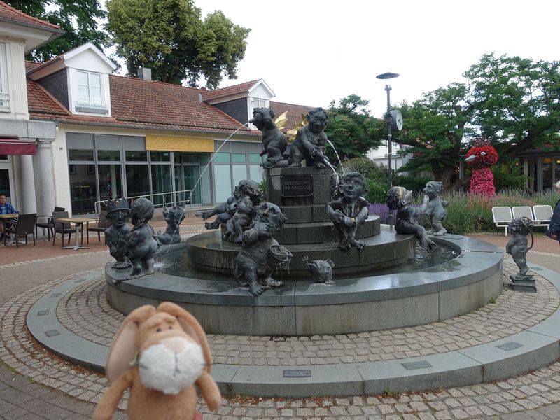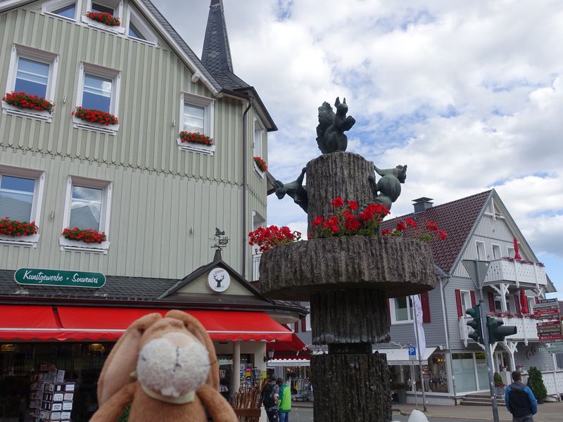 In der Ortsmitte gibt es lustige Skulpturen und einen Eichhörnchenbrunnen.