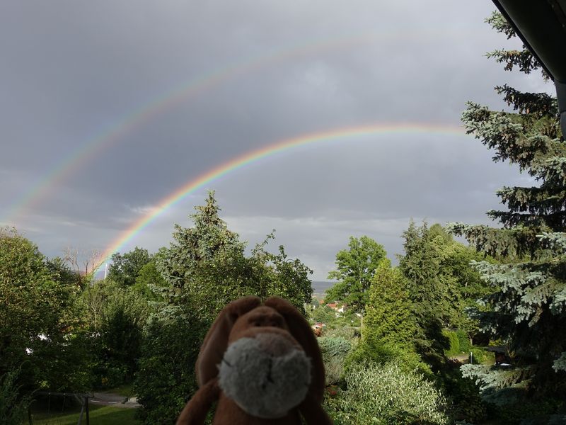 Zu Hause habe ich dann diesen schicken doppelten Regenbogen gesehen.