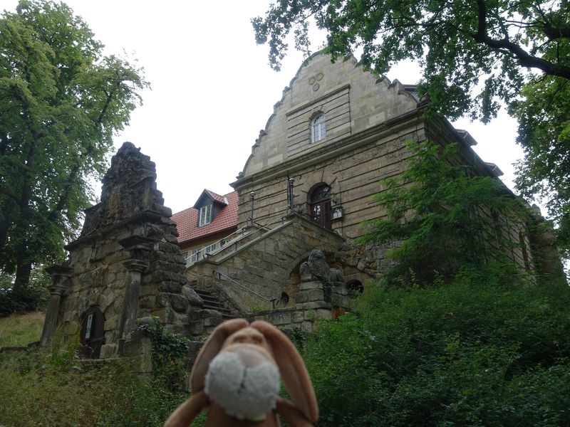 Das Wetter ist nicht so sonnig, wir sind trotzdem unterwegs. Dieser Park ist einer der ersten Deutschlands. Das ist ein Jagdschlösschen, in dem jetzt ein Restaurant ist.