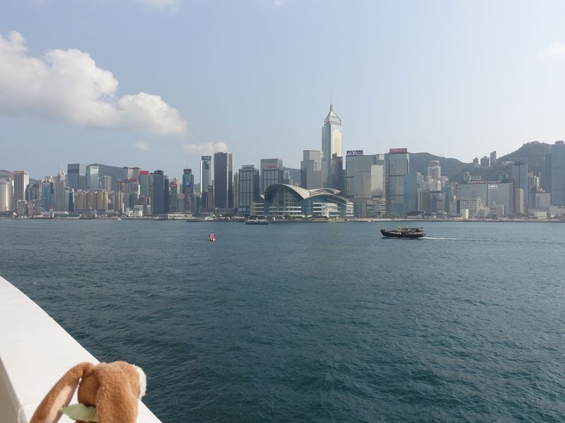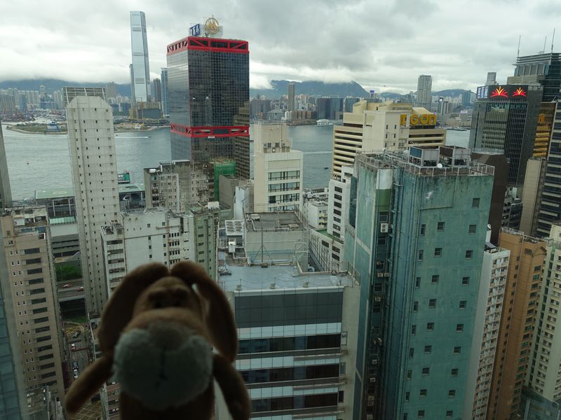 Wir sind in Hong Kong angekommen und wohnen im 35. Stock mit Blick auf den Hafen,