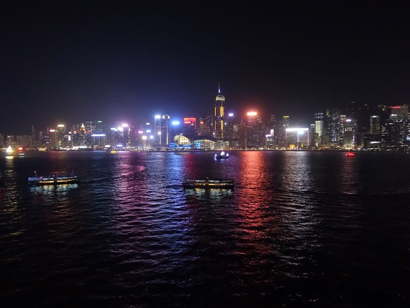 Unser Schiff lag sehr gut – wir konnten direkt auf die beleuchtete Skyline schauen.