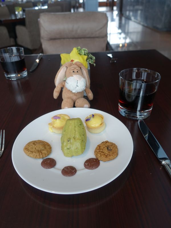 Im Hotel haben wir in der Club Lounge gewartet, bis das Zimmer bezugsfertig war.