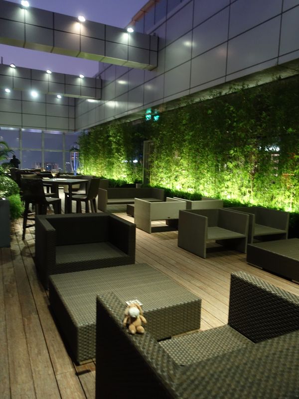 Abends kann man vom Raucherbereich der Lobby schön auf die Hotels schauen.