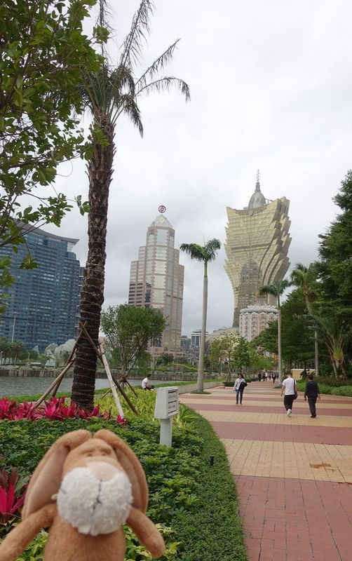 Das Wynn Macau ist unser Ziel. Es sieht dem Wynn Palace sehr ähnlich. Im Hintergrund sieht man das MGM.