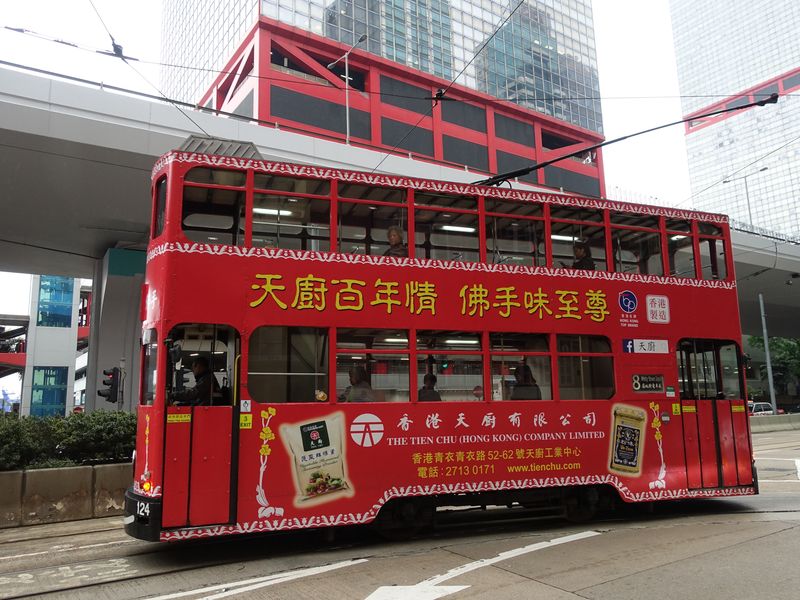 Lustig finde ich die 2-stöckigen Straßenbahnen hier in Hong Kong.