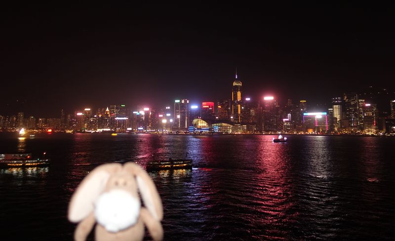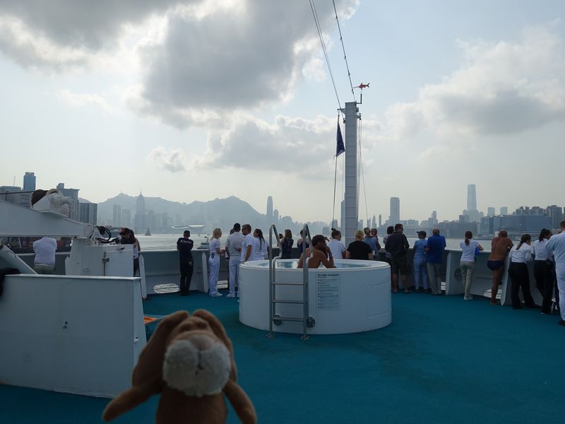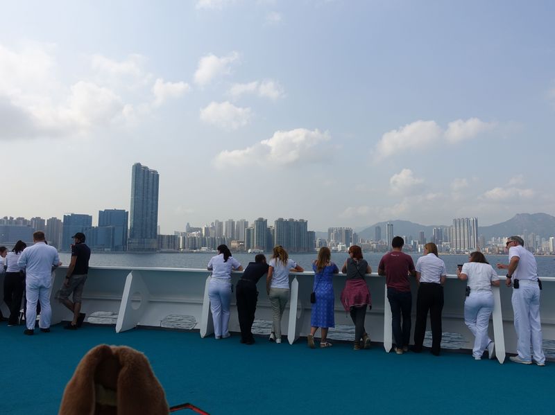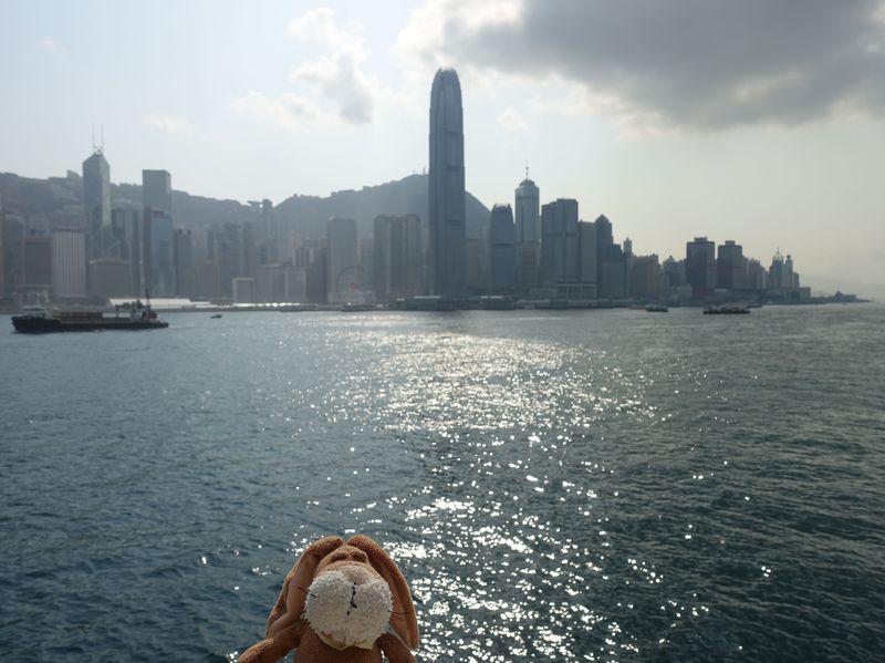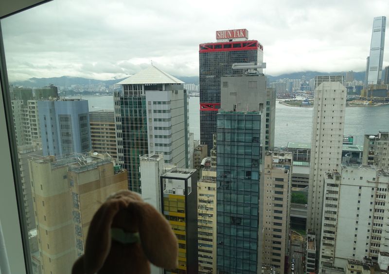Wir sind in Hong Kong angekommen und wohnen im 35. Stock mit Blick auf den Hafen,