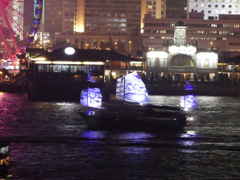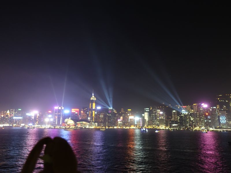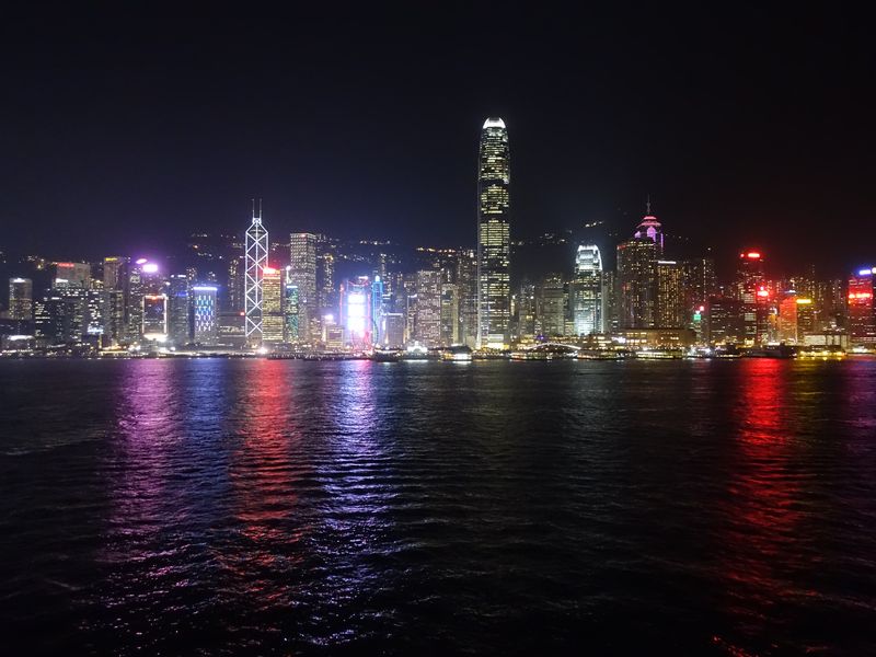 Unser Schiff lag sehr gut – wir konnten direkt auf die beleuchtete Skyline schauen.