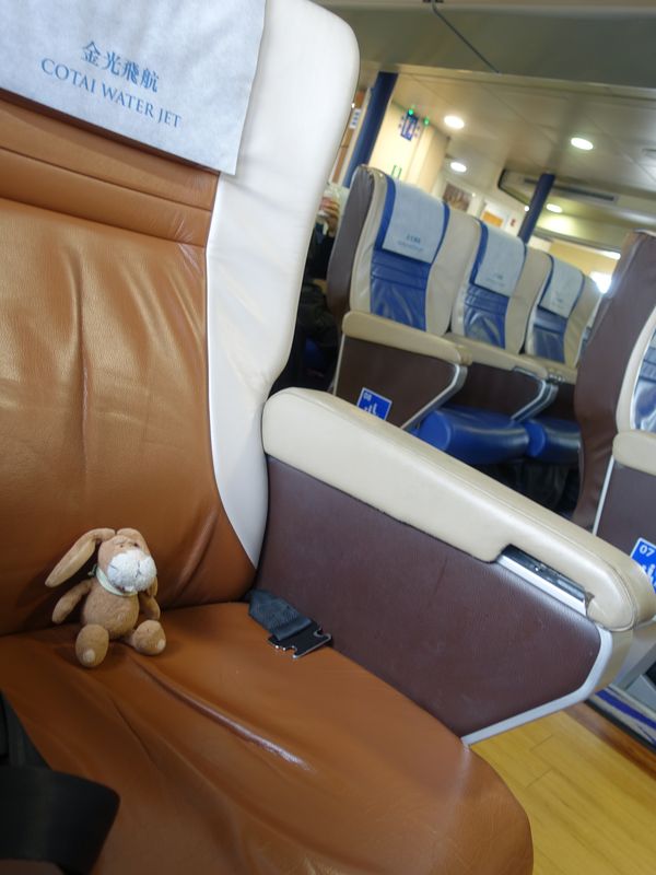 Heute haben wir die AIDA verlassen – und schon sitze ich auf dem nächsten Schiff. Es ist die Fähre nach Macau.
