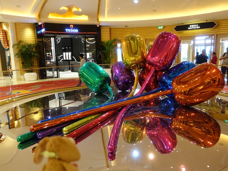 Im Wynn Palace sind wir dann ausgestiegen und haben das Hotel erkundet. Hier gibt es viele Blumen.