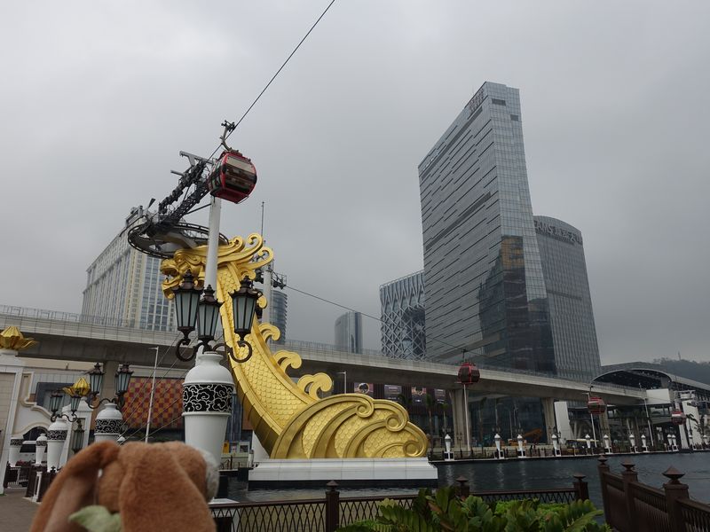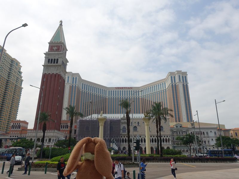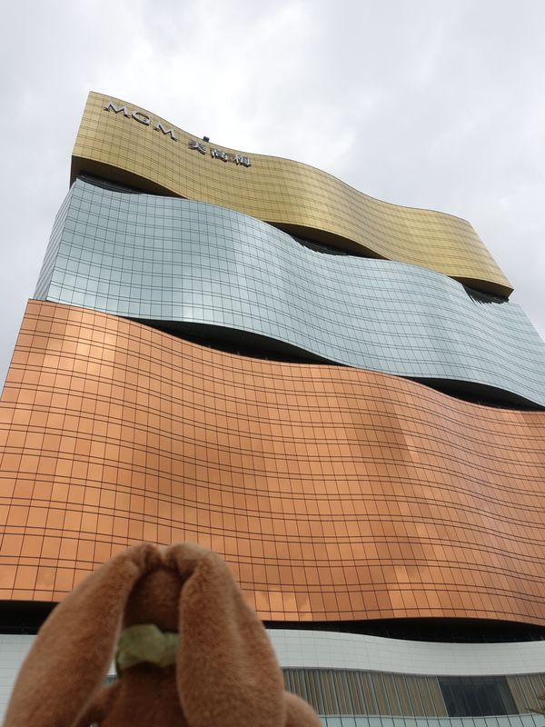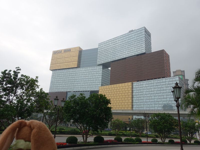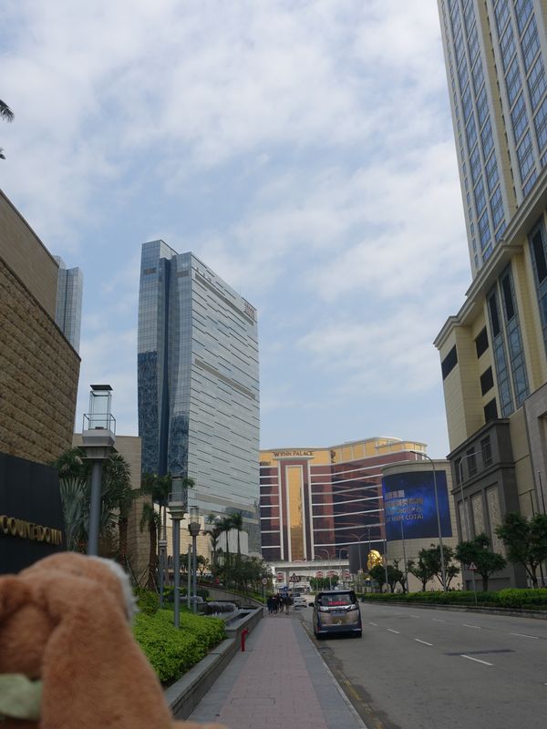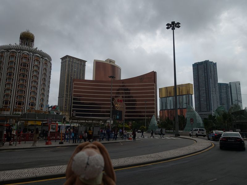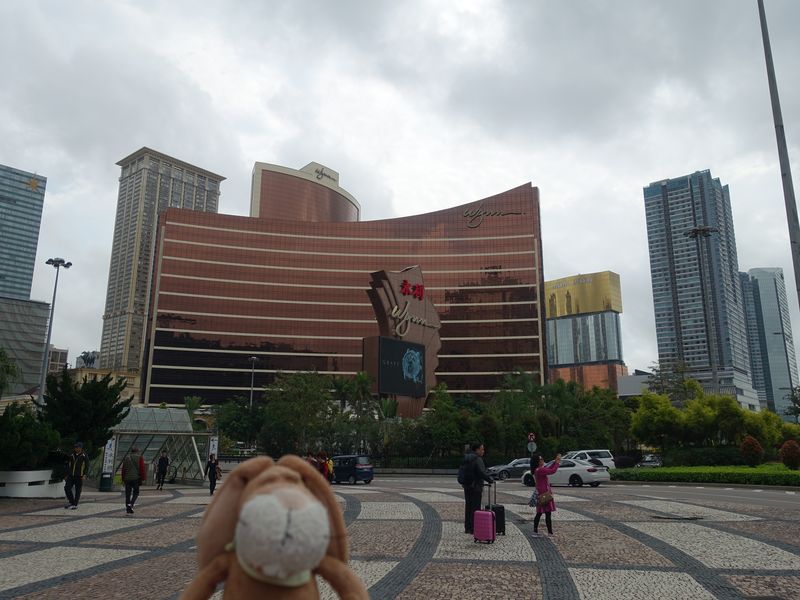 Das Wynn Macau ist unser Ziel. Es sieht dem Wynn Palace sehr ähnlich. Im Hintergrund sieht man das MGM.