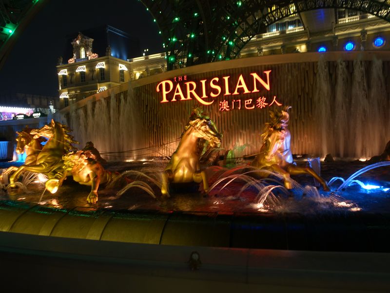 Wir haben uns das Parisian angeschaut. Ein bunter Brunnen.