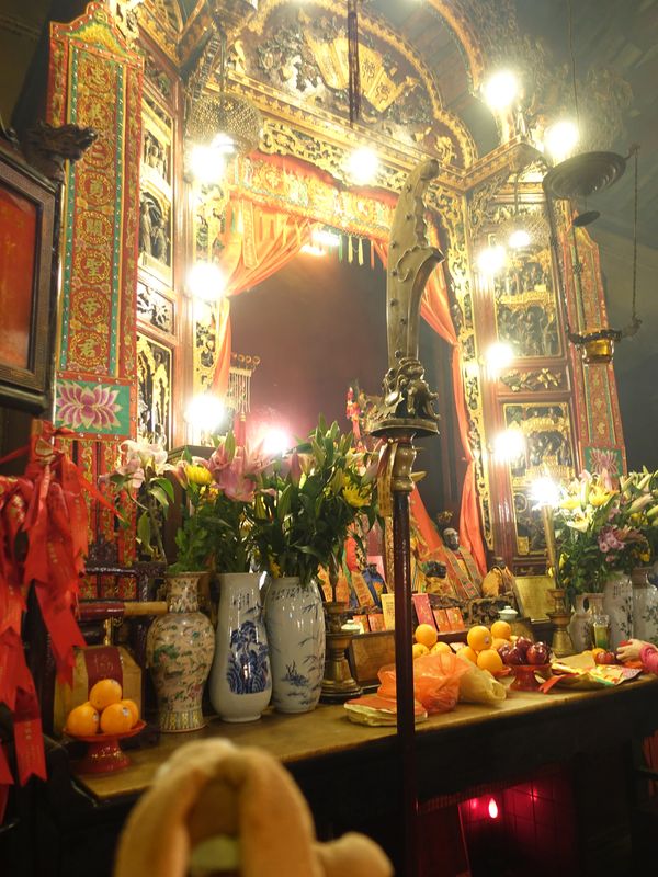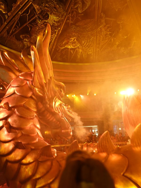 Innen sieht es gemäßigter aus, aber überall waren Schwaden von Weihrauch, oder was auch immer die Chinesen hier benutzen.