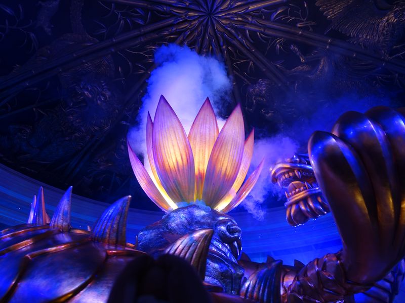 Eine halbe Stunde später gibt es die nächste Show – mit einem Baum. Bis dahin sind wir zum Performance Lake gegangen, um uns die Wassershow anzuschauen.