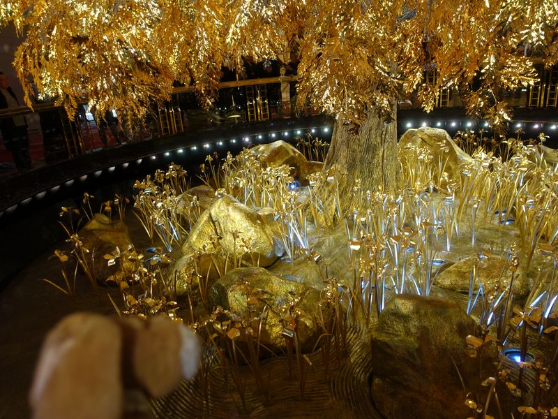 Der Baum besteht aus über 200 Ästen und 98000 Blättern aus 24-karätigem Gold und Messing.