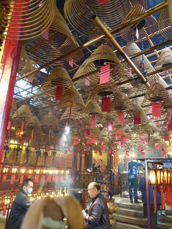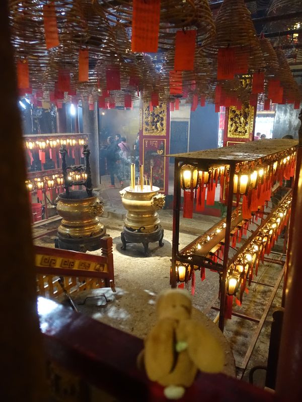 Wir haben aus Hasensicht nicht so spannende Sachen unternommen – leckeres Essen gibt es hier. Kleine Straßen mit spannenden Läden, die allerdings ‚Nicht Fotografieren‘-Schilder am Fenster hatten. Dann mache ich es nicht. Den Man Mo Tempel durfte man fotografieren.