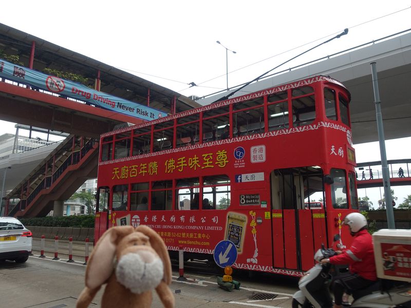 Lustig finde ich die 2-stöckigen Straßenbahnen hier in Hong Kong.
