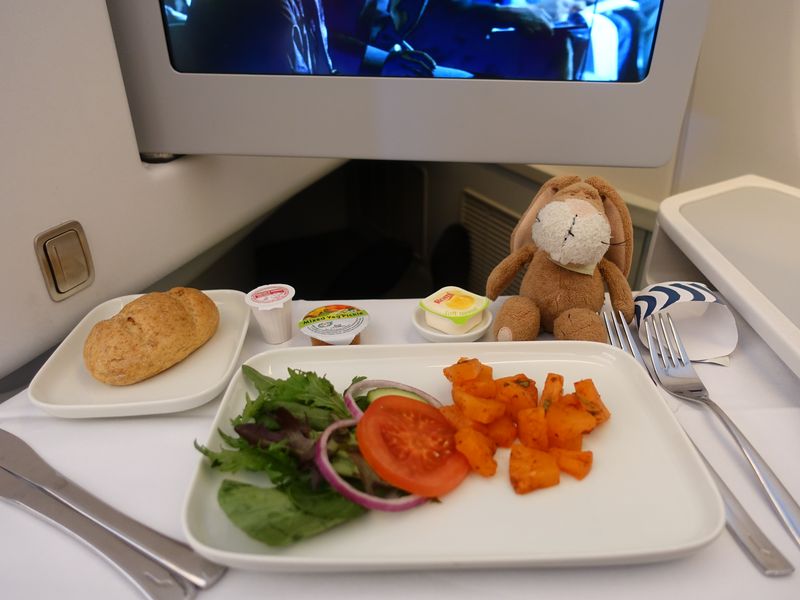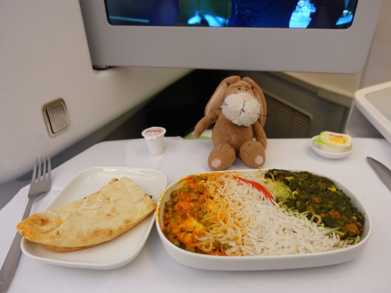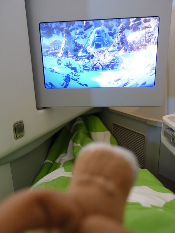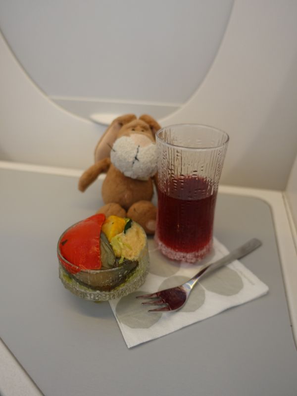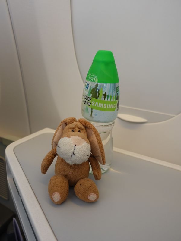 Nach einer letzten Nacht im Hotel bin ich wieder mal in ein Flugzeug gestiegen. Hier war das Begrüßungsgetränk.