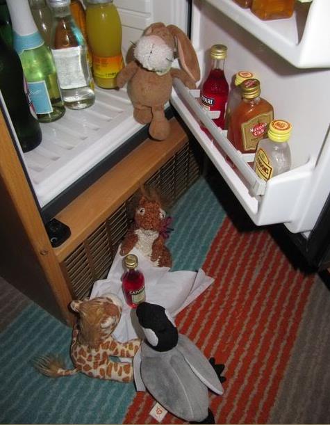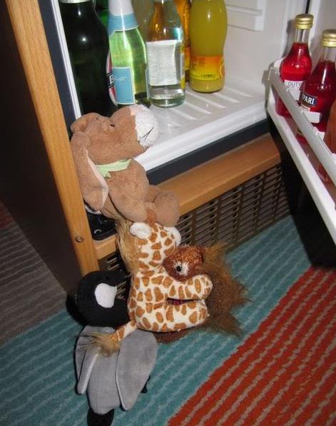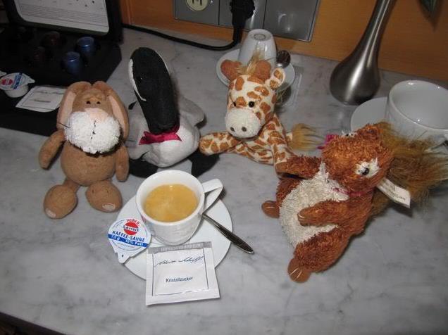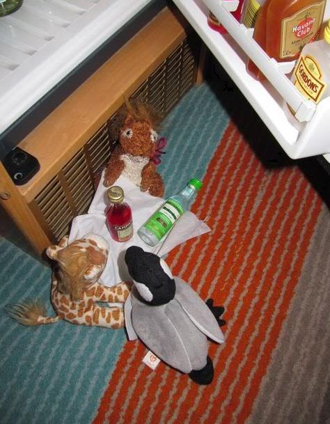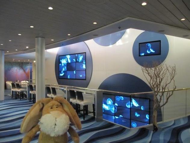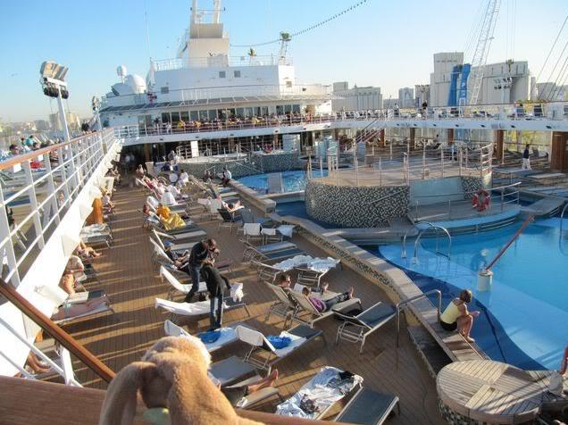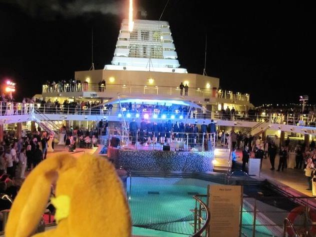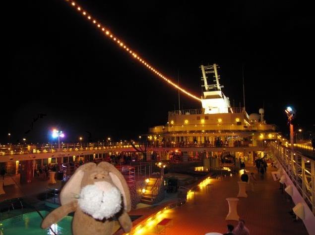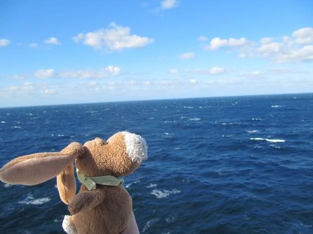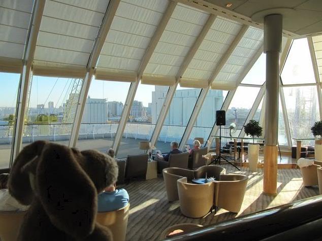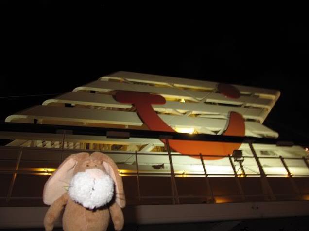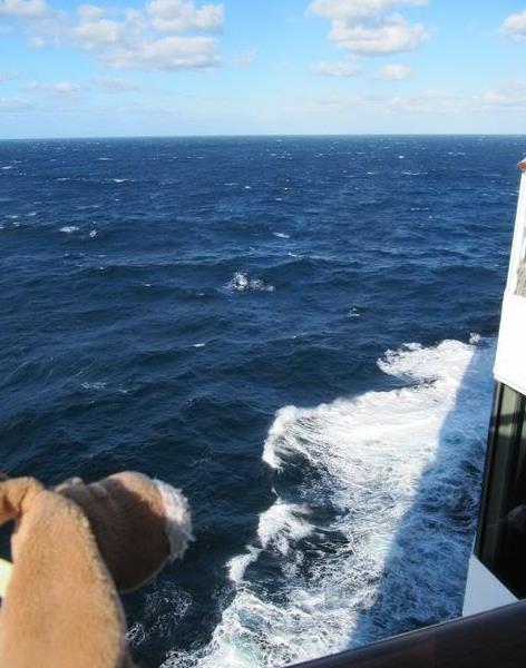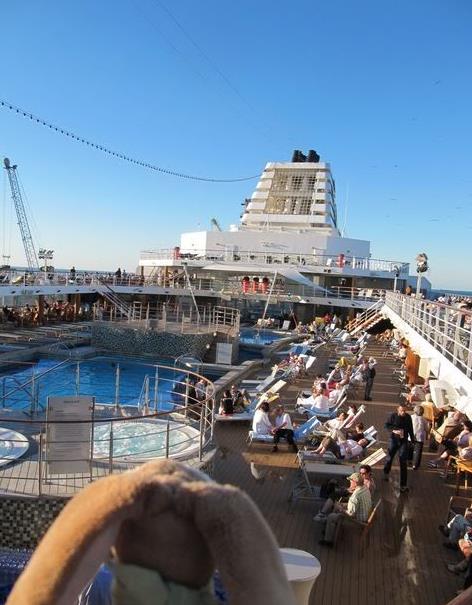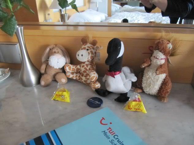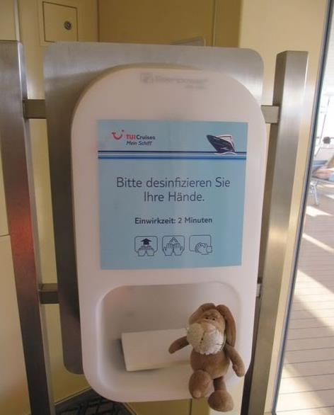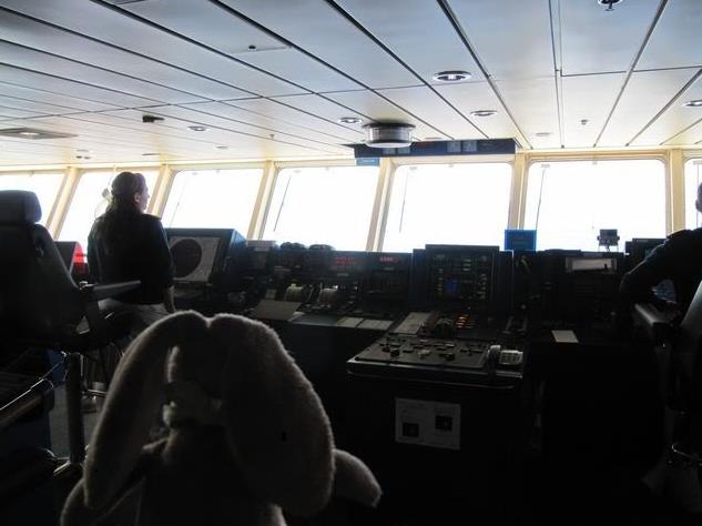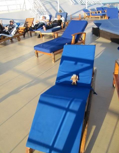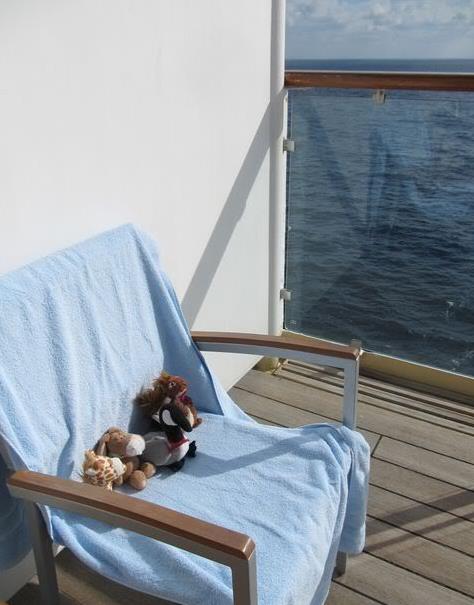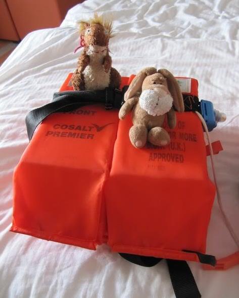 At the beginning of a cruise there is always a test for an emergency – so all people and ToyVoyager on board know, what to do. Here I am with the lifejacket and Sqizzle, because we are so small we can take one together.