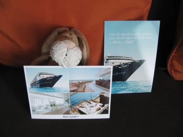 Hello and Ahoi, I found two postcards from the ship – so you can see it.