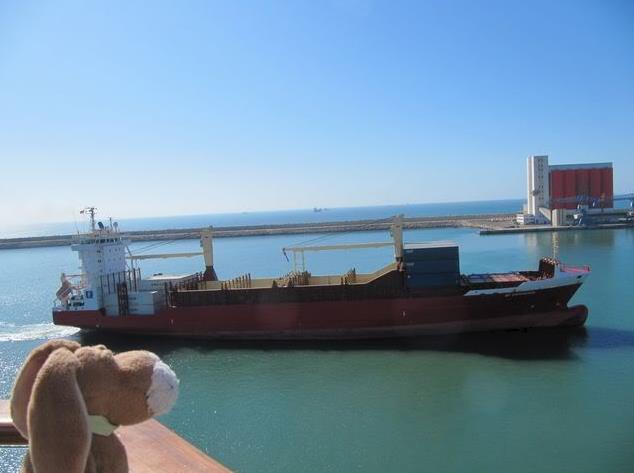 Hello from Morocco, I woke up this morning and found out that we are in Morocco. First I saw a big ship in the harbour.
