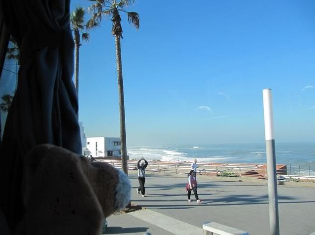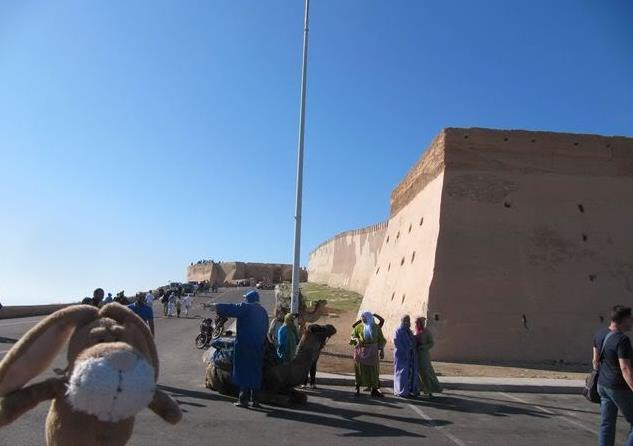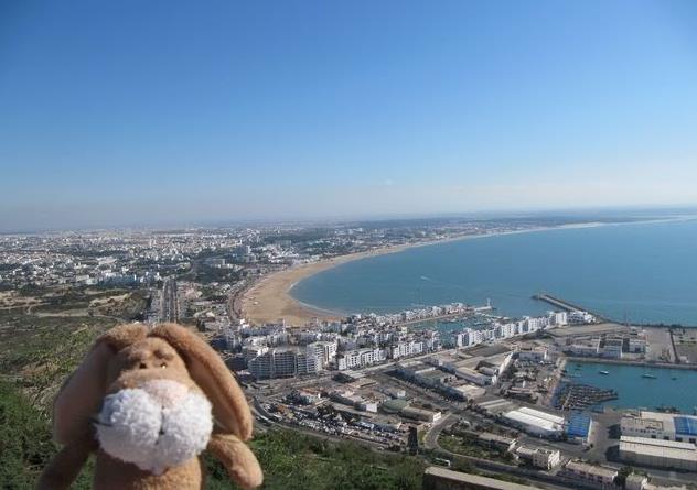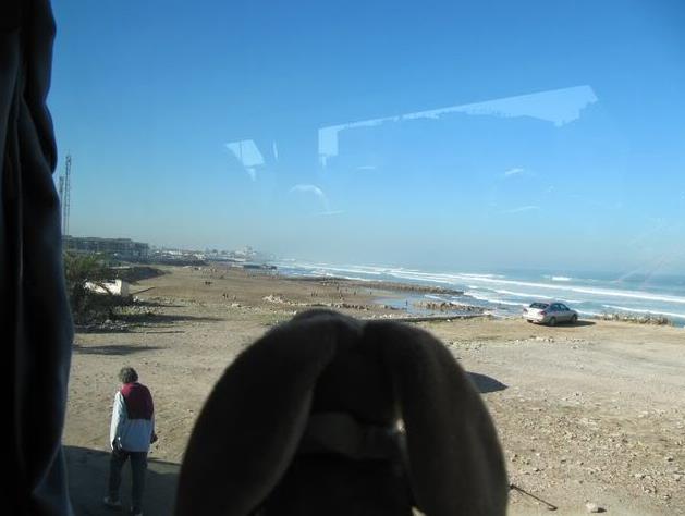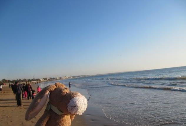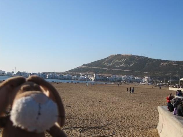 Before we went back to the ship we walked along the long beach. Can you remember it? We saw it from the hill. Behind me you can see some white words on the hill, they are from the national hymn of Morocco.