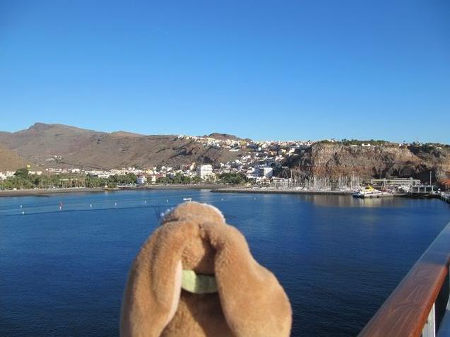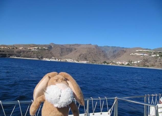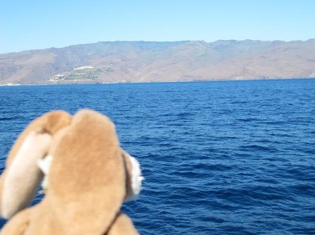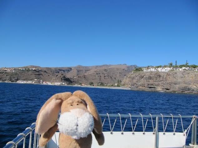 Hello from La Gomera! We did a nice boat trip – and watched out for dolphins and pilot whales . But first you can see the view from our balcony. This was San Sebastian on the La Gomera Island.