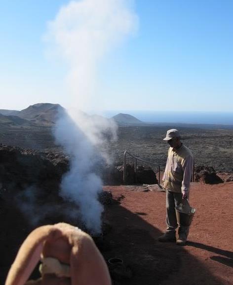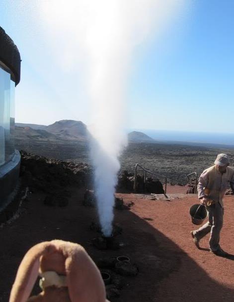 Then a man put water into a hole in the ground. 2 seconds later the water came out like a geysir.