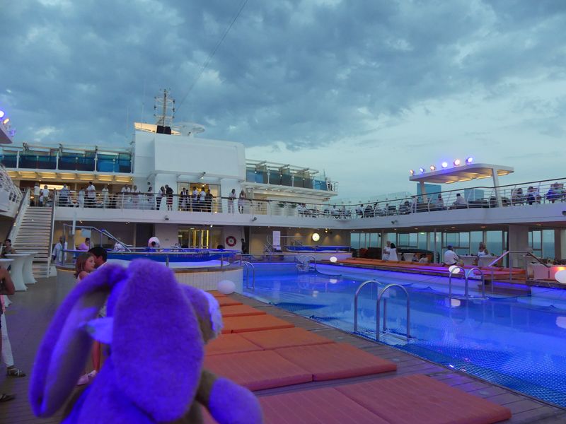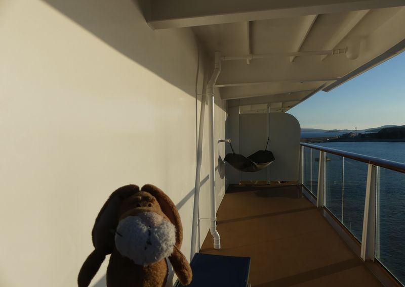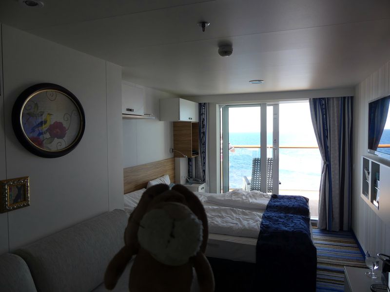 Wir wohnen auf Mein Schiff 3 in einer schönen Kabine. Auf dem Foto sieht sie dunkler aus als in Wirklichkeit, dafür sieht man im Hintergrund den schönen Balkon.