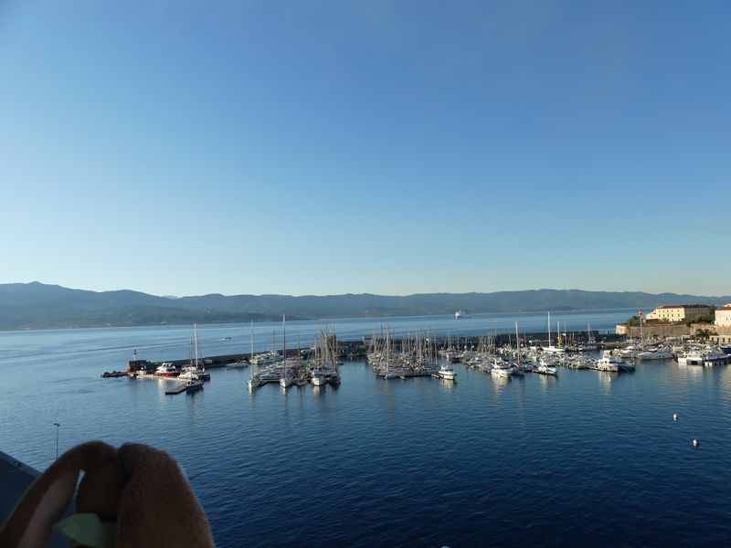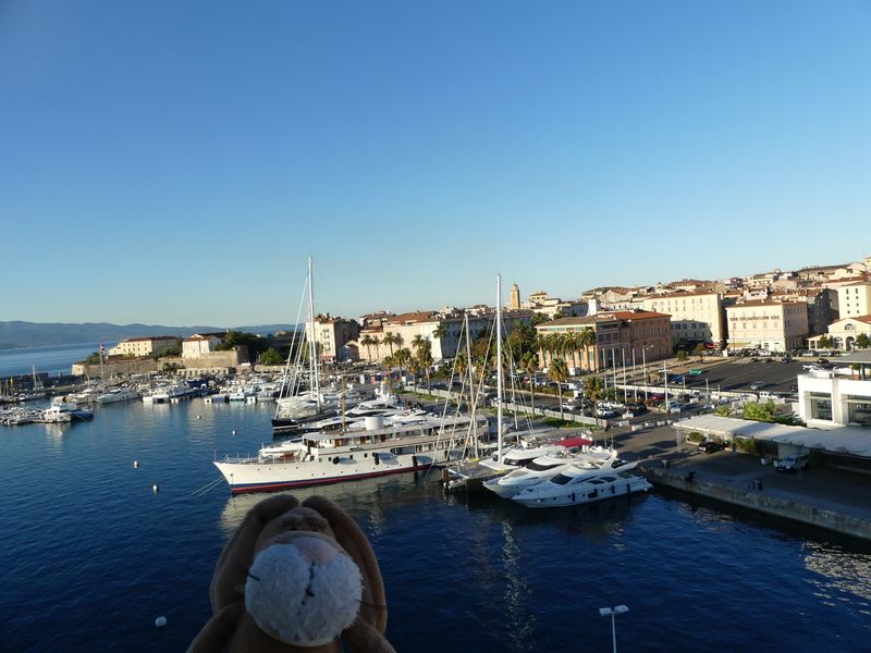 Wir sind in Ajaccio auf Korsika angekommen – der Blick vom Balkon war sehr schön.