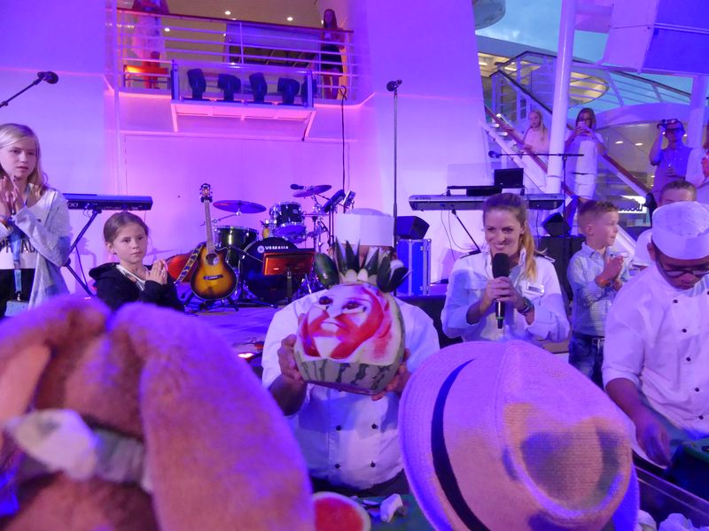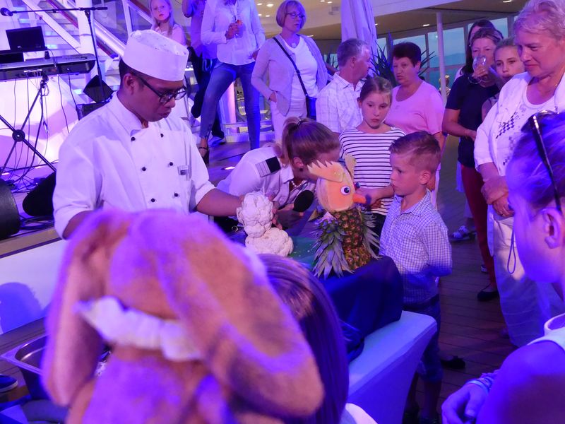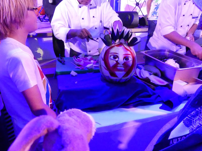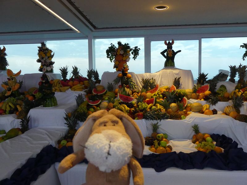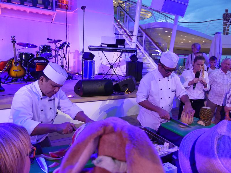 Abends auf dem Schiff habe ich mir das Obst – und Gemüseschnitzen angeschaut.