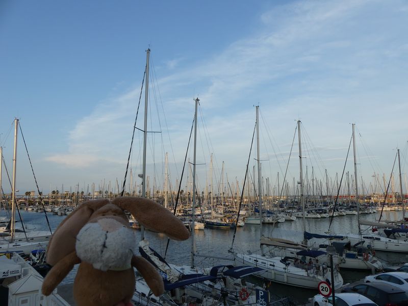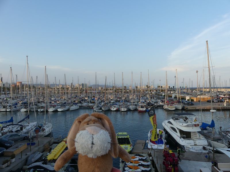 Ich bin in einer Großstadt – auch wenn es gerade nicht so aussieht. Hinter mir ist der Olympische Hafen von Barcelona.
