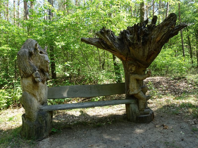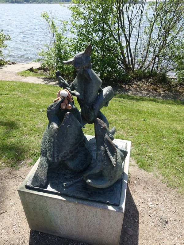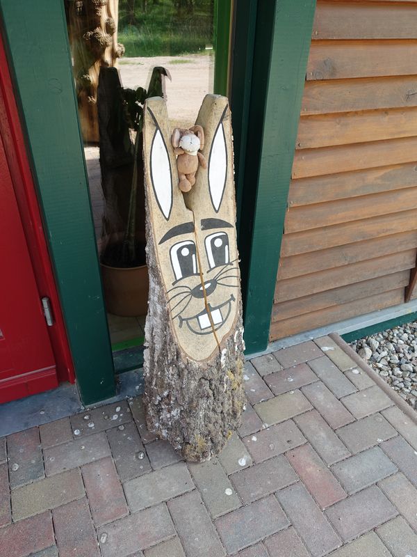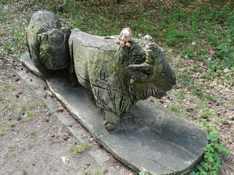 Das ist wohl einer der Gründer hier. Überall im Park gibt es schöne Holzskulpturen.